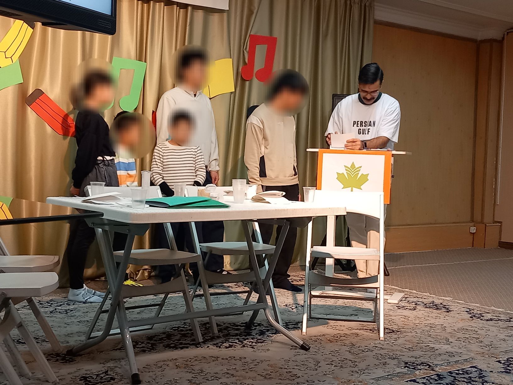 発表内容は、ペルシャ語、個人研究、音楽の三本立てです。いずれも、全員が主役として発表する構成になっています。9月からテヘランにいた子どもたちは、オンラインで少しずつ準備を進めていましたが、12月に戻ってきた子どもたちは、限られた時間の中で急ピッチで取り組みました。
